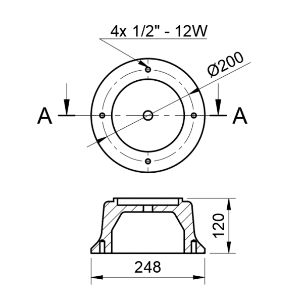 Linea: R151Altura: 120 mmFijación: 4 roscas 1/2″ -12W a 200mm