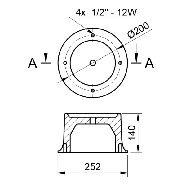 Linea: R170Altura: 140 mmFijación: 4 roscas 1/2″ -12W a 200mm