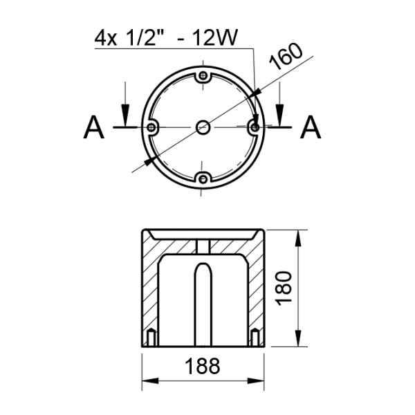 Linea: R170Altura: 180 mmFijación: 4 roscas 1/2″ -12W a 160mm