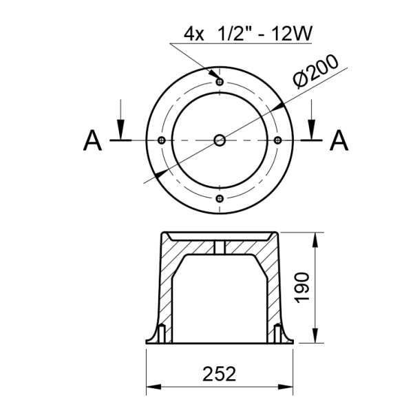 Linea: R170Altura: 190 mmFijación: 4 roscas 1/2″ -12W a 200mm