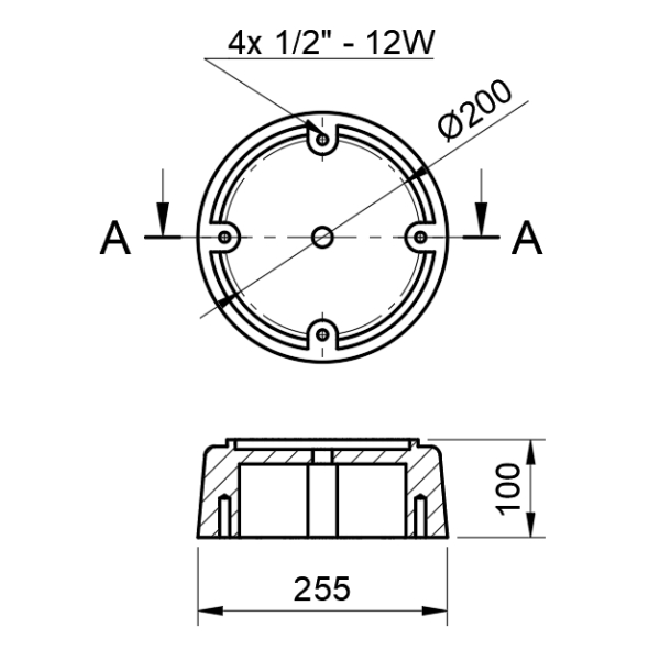 Linea: R198Altura: 100 mmFijación: 4 roscas 1/2″ -12W a 200mm