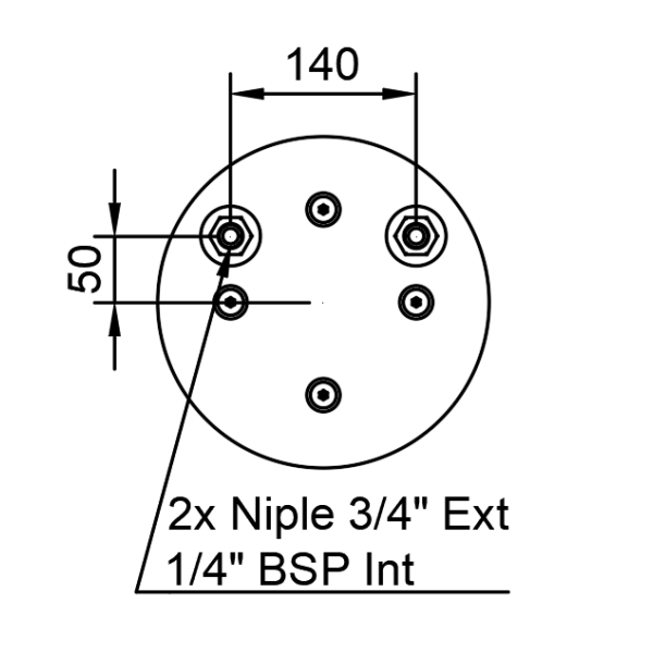 Línea: R198Fijación: 2x Niple 3/4″ a 140mm desplazados 50mm