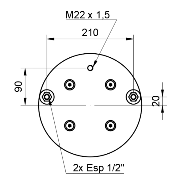 Línea: R198Fijación: 2x Esp 1/2″ a 210 desplazados 20mmEntrada aire M22x1,5 a 90mm