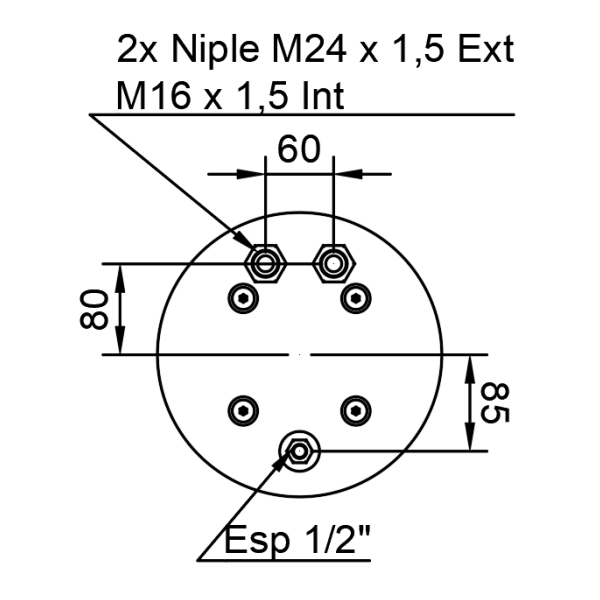 Línea: R198Fijación: 2x Niple M24 x 1,5 ExtM16 x 1,5 Inty Esp 1/2″