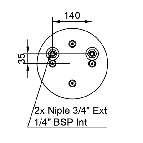 2x Niple 3/4" a 140mm desplazados 35mm